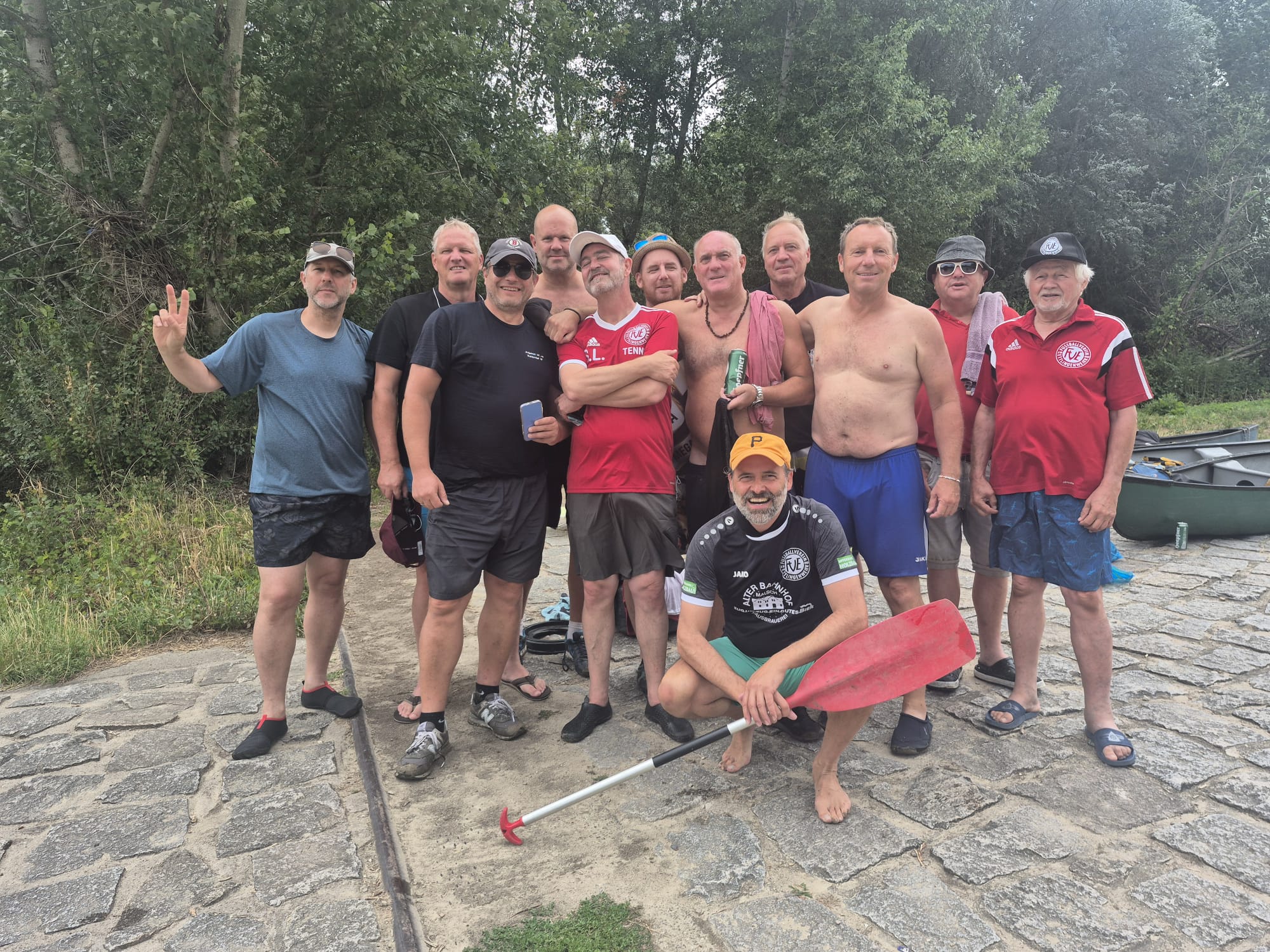 Nach einer schnarchigen Nacht, wurden alle mit Rührei, Bacon, Wurst, Käse und Nutella und getoasteten Brötchen beim gemeinsamen Frühstück verwöhnt. Natürlich wurde auch da schon vereinzelt der Kater mit einem Konterbier bekämpft, bevor wir dann mit 12 Mann zum Paddeln aufgebrochen sind.