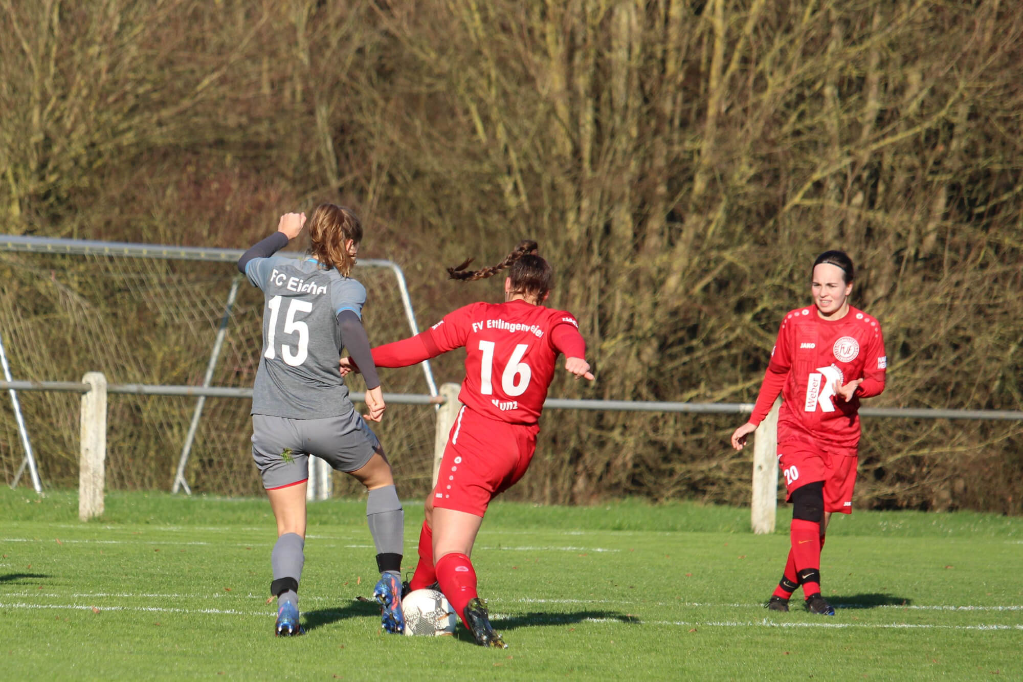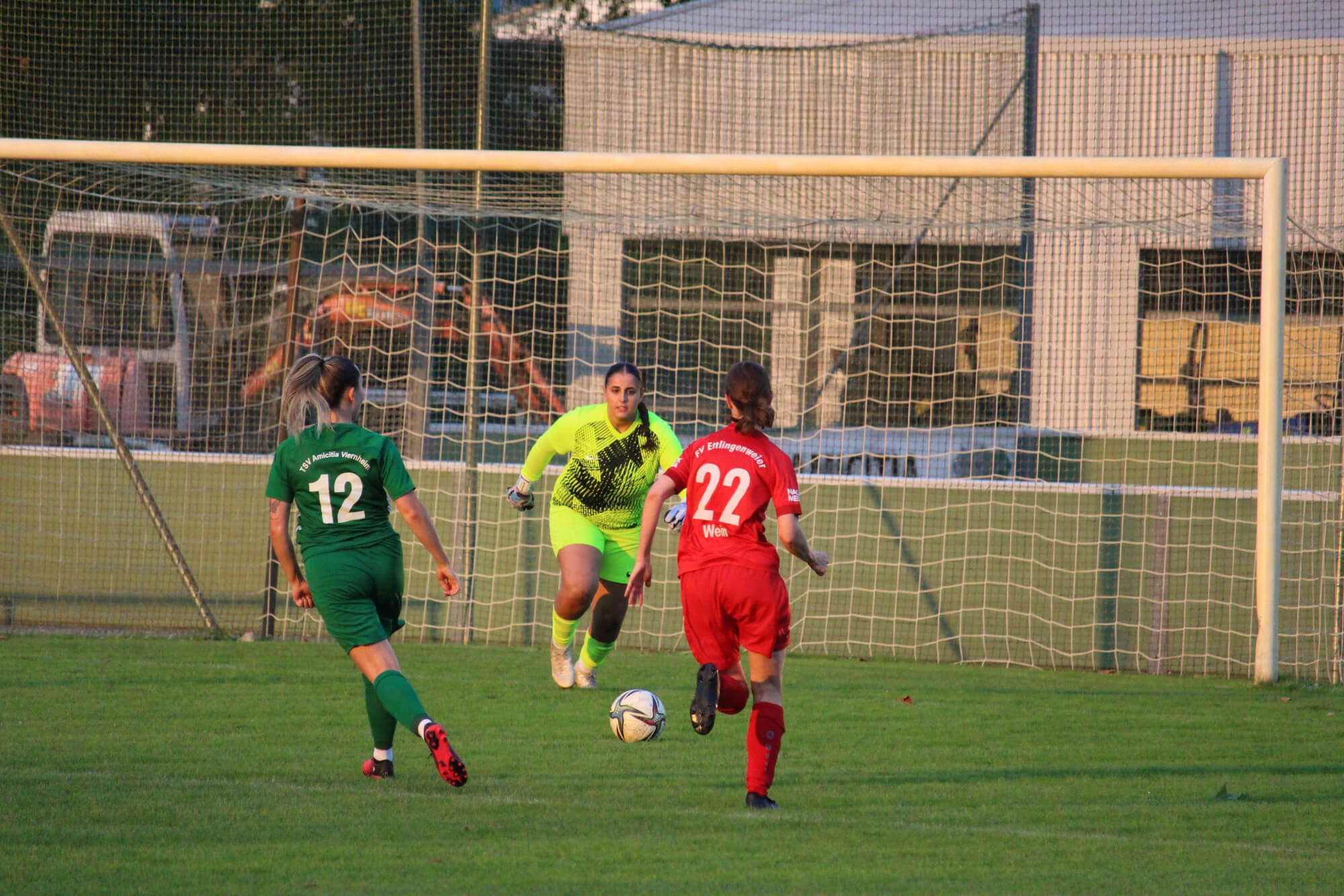 Der FVE erwischte den besseren Start und bereits nach einer Spielminute war es Sarah Holzmann, die den FVE mit einem satten Distanzschuss in Führung brachte. Die FVE-Damen standen geordnet und ließen kaum eine Chance des Gegners zu. Murvet Vardar erhöhte nach einer Viertelstunde auf 2:0. Mit viel Einsatz wehrte der FVE die Angriffe des Gegners ab und brachte die Führung sicher in die Halbzeit.