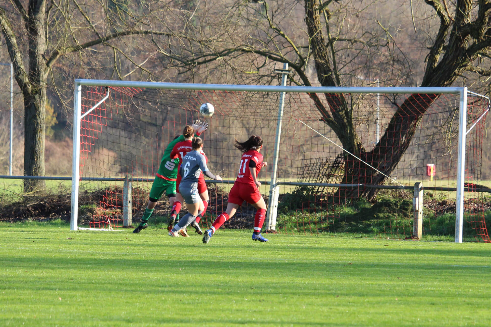 Ähnliches Bild in Halbzeit 2. Der FVE verteidigte leidenschaftlich mit allem was man heute geben konnte. Torfrau Tanja zeigte all ihr Können und hielt mit zahlreichen Paraden ihren Kasten sauber. Es dauerte so auch bis zur 88. Minute, als ein langer Ball über die Abwehr dann nicht mehr verteidigt werden konnte.