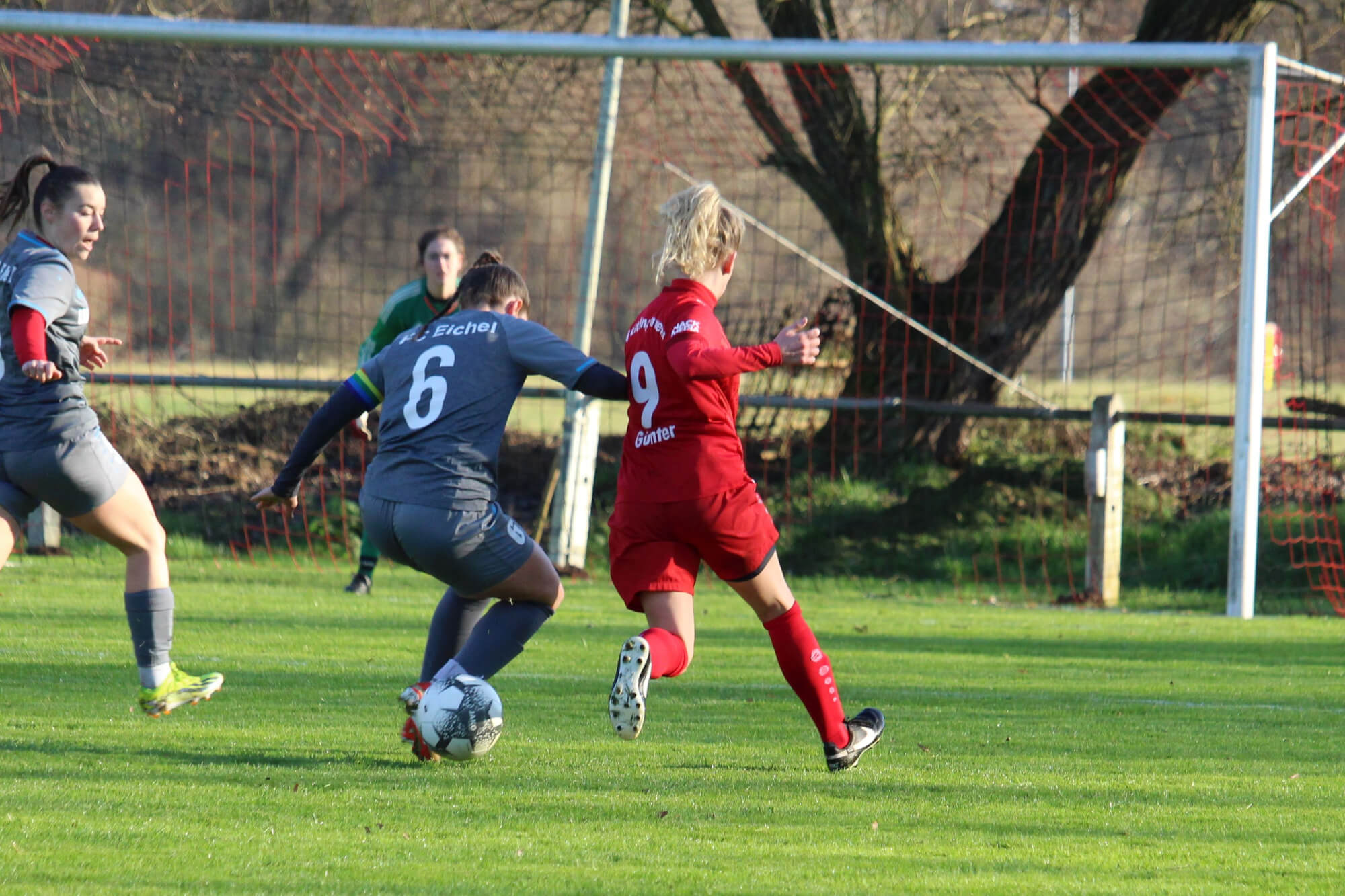 Am vergangenen Samstag traten die FVE- Damen zu ihrem weitesten Auswärtsspiel in Eichel an. Trotz eisiger Temperaturen zeigten die FVE-Damen von Beginn an eine starke Leistung und dominierten das Geschehen auf dem Platz. Mit viel Einsatz und zahlreichen Chancen erarbeiteten sie sich frühzeitig Möglichkeiten, das Spiel für sich zu entscheiden. Leider blieb der verdiente Führungstreffer in der ersten Halbzeit aus – unter anderem, weil ein Elfmeter nicht verwandelt wurde. So ging es mit einem 0:0 in die Pause.