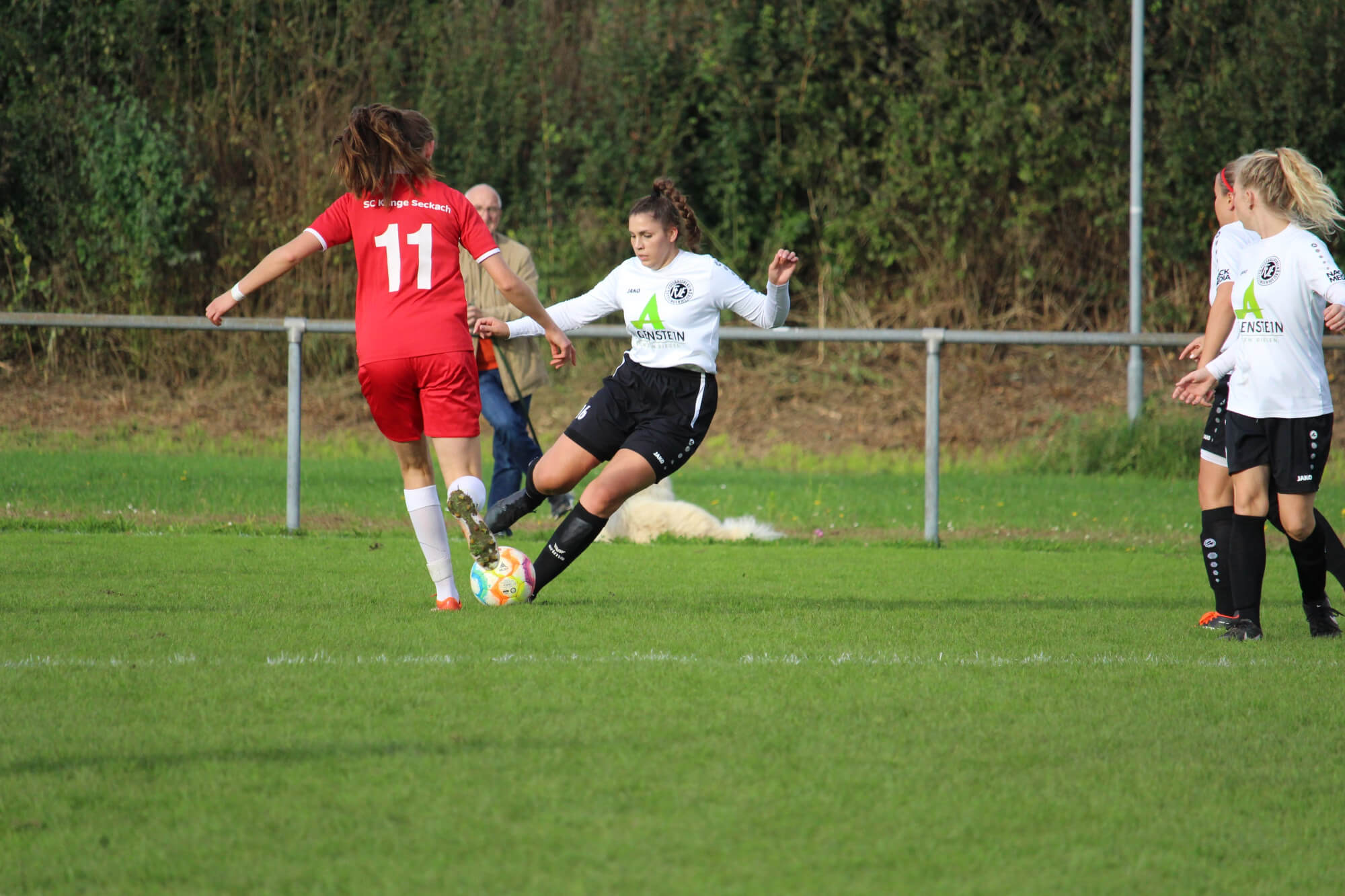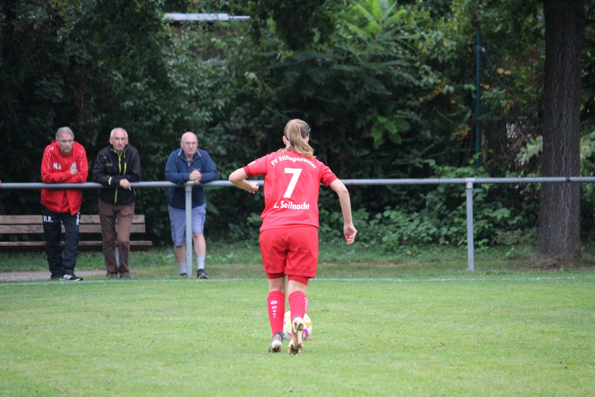 In der 18. Minute kam der FVE durch Nicole Günter und Murvet Vadar erstmals gefährlich vor das gegnerische Tor und setzte die Seckacher Abwehr unter Druck. Nur wenige Minuten später hatten die beiden erneut eine große Chance, unterstützt durch Geiss, doch der Ball wollte noch nicht ins Netz.