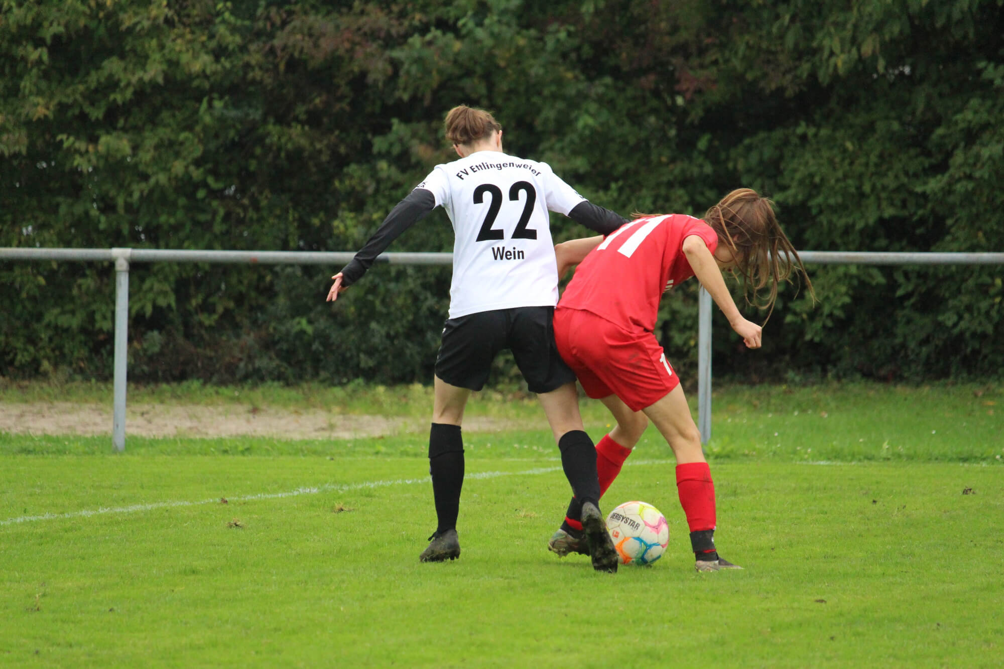 Die Partie war geprägt von harten Zweikämpfen und hohem läuferischen Aufwand auf beiden Seiten. In den ersten 45 Minuten war der FV Ettlingenweier defensiv gut organisiert und ließ nur wenige klare Chancen zu. Allerdings fehlte es im Spiel nach vorne oft an der Präzision, um gefährlich vor das Tor zu kommen. Kurz vor der Halbzeit dann der Rückschlag. Die Mädels aus Mutschelbach gingen mit 1:0 in Führung.