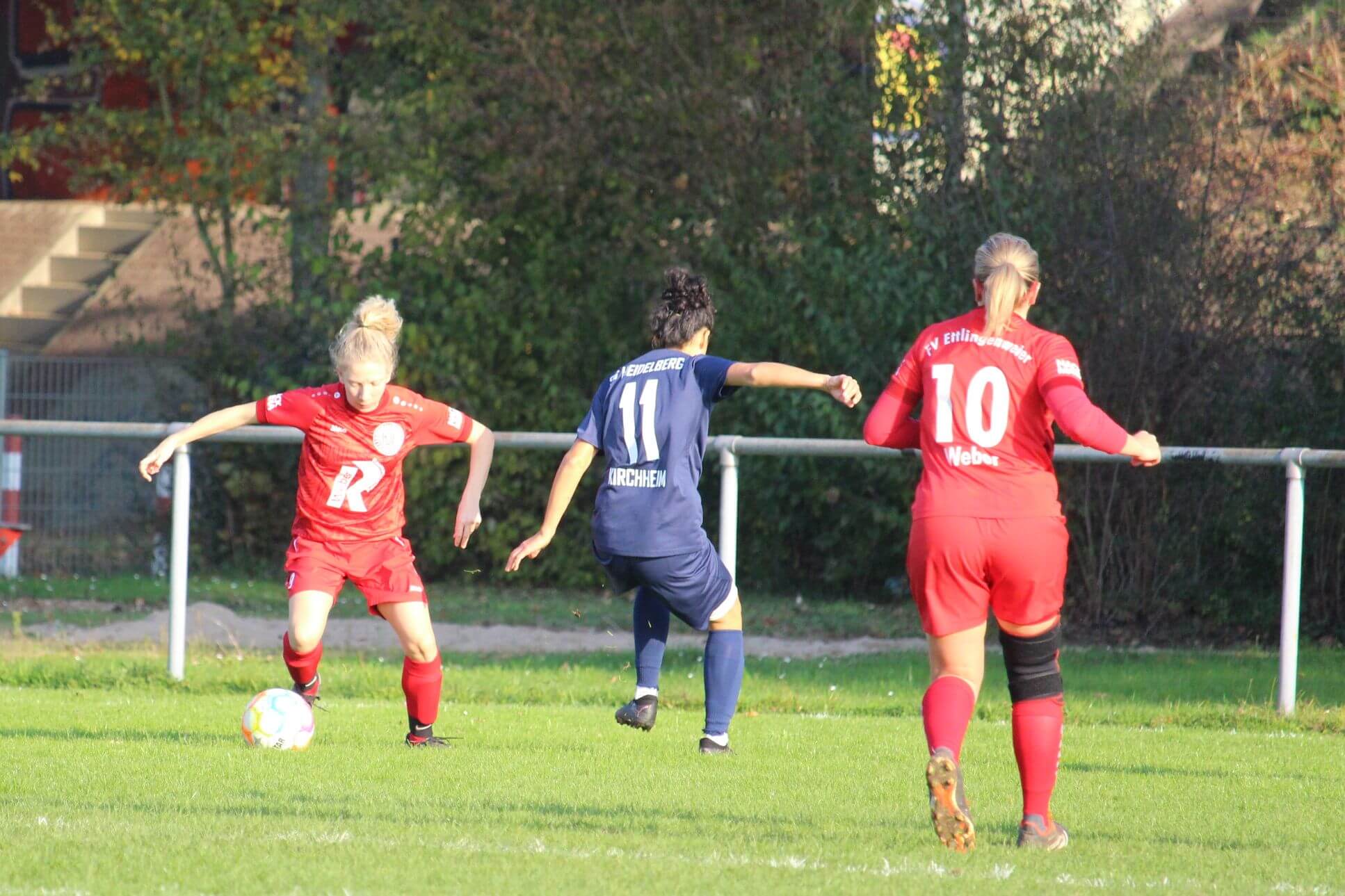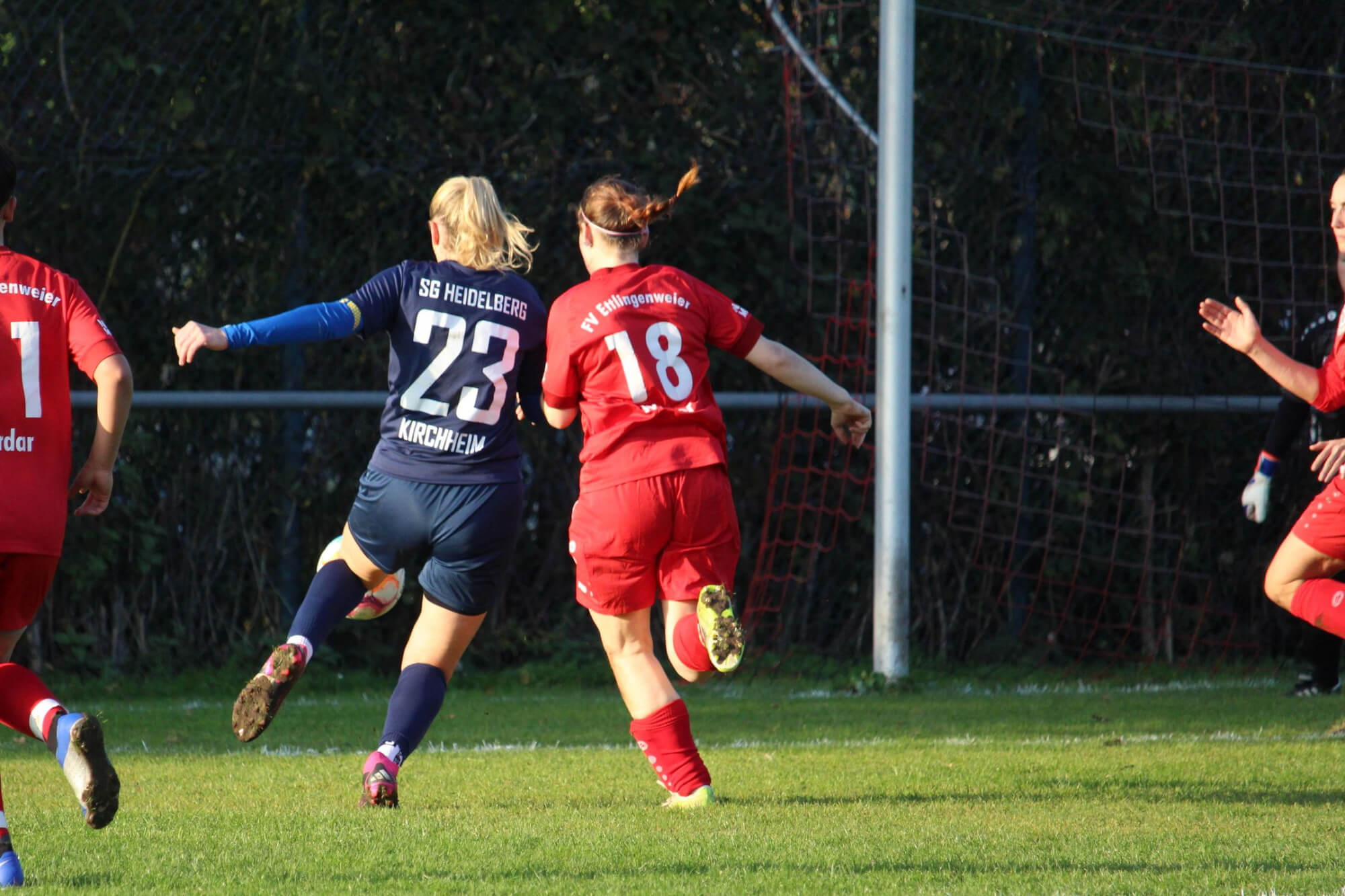 Am 09.11.2024, an einem sonnigen Samstagnachmittag, trafen der FV Ettlingenweier und die SG HD-Kirchheim in einem spannenden Duell aufeinander. Pünktlich um 14:30 Uhr ertönte der Anpfiff, und die Spielerinnen aus Ettlingenweier starteten gut gelaunt und fokussiert ins Spiel. Schon in der 9. Minute konnte Murvet Vardar nach einer präzisen Vorlage von Nicole Günter das erste Tor für Ettlingenweier erzielen – die Freude auf dem Platz war groß. Nur acht Minuten später kam es zu einem Foul an Laura Kutterer im Strafraum der Gegner, wodurch Ettlingenweier einen Elfmeter zugesprochen bekam. Nicole Günter trat an und verwandelte ihn sicher zum 2:0. Ettlingenweier schien in dieser Anfangsphase klar die stärkere Mannschaft zu sein und kontrollierte das Spielgeschehen souverän. Kurz vor der Halbzeit jedoch gelang HD-Kirchheim der Anschlusstreffer zum 2:1 durch einen Elfmeter. Die Partie blieb damit offen und versprach eine spannende zweite Halbzeit.
