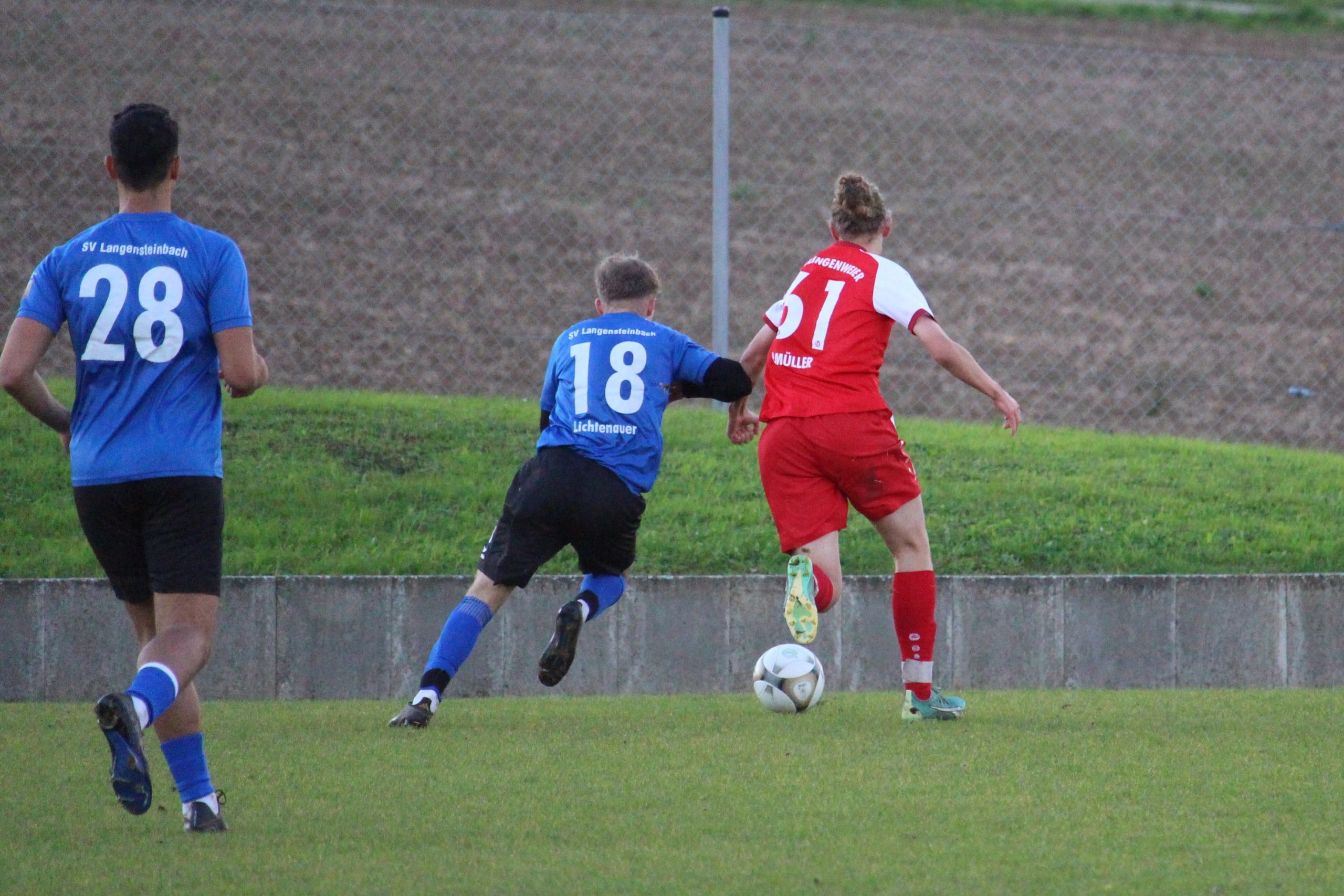 Nach dem Seitenwechsel kam Langensteinbach zwischen der 50. und 70. Minute etwas besser ins Spiel, ohne jedoch zwingend gefährlich zu werden. In dieser Drangphase blieb die Defensive des FVE stabil. Das 0:3 fiel durch einen Fehler des Heimtorhüters: Ein langer Ball wurde falsch eingeschätzt, der Keeper konnte ihn nicht festhalten – Tim Fährmann reagierte am schnellsten und schob aus kurzer Distanz ein. Das einzige Gegentor resultierte aus einer unglücklichen Szene: Ein Kopfball des SVL-Angreifers klatschte zunächst an die Latte, sprang dann vom Rücken des FVE-Torwarts ins eigene Netz – 1:3. Den Schlusspunkt setzte erneut Emir Karaismailoglu, der nach einem schnellen Konter ab der Mittellinie allein auf den Torwart zulief und souverän zum 1:4-Endstand einschob.