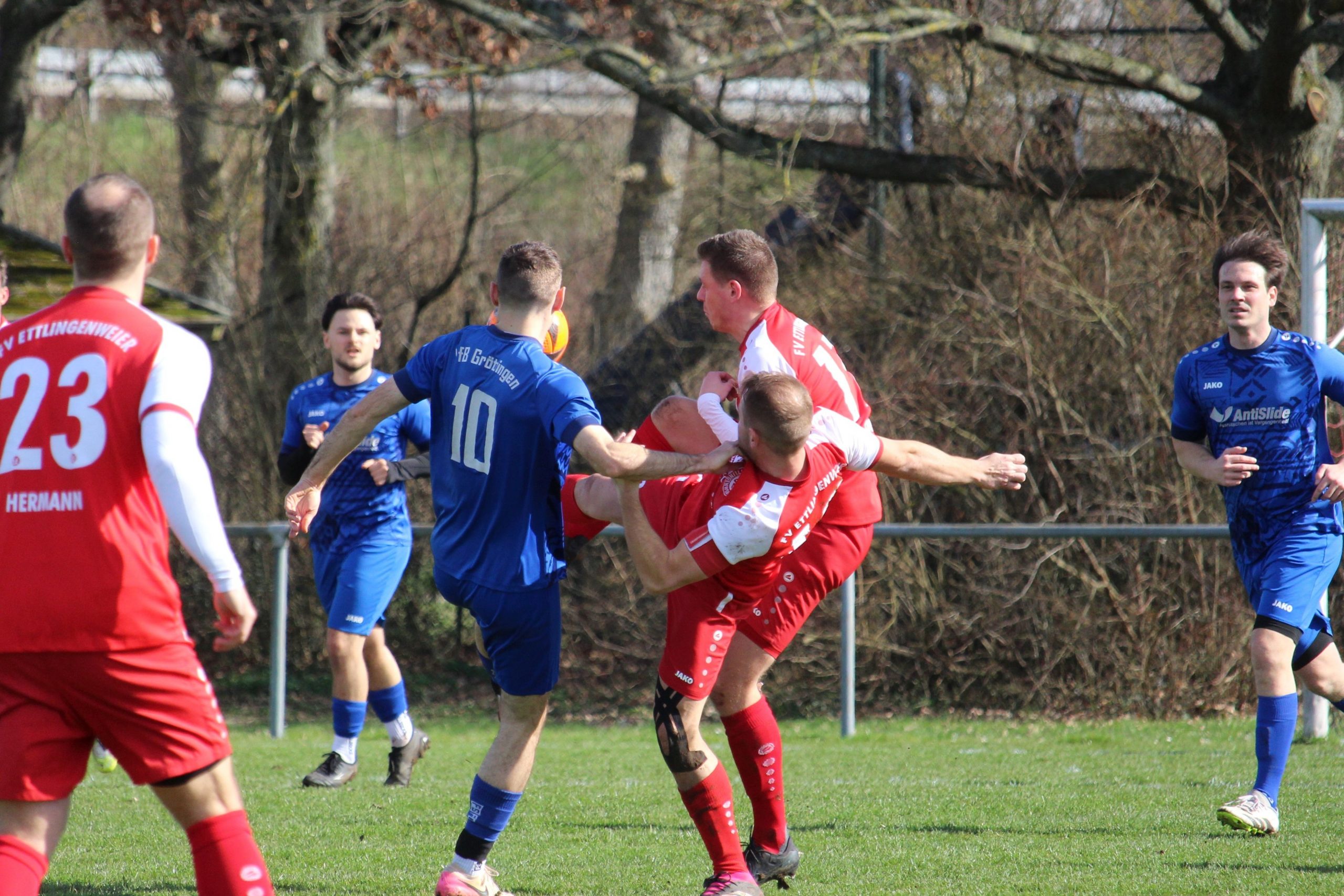 Ein turbulentes Spielen sahen die Zuschauer beim Heimspiel der 2. Mannschaft gegen die SpVgg aus Söllingen. Der FVE2 kam auf dem tiefen Rasen schwer ins Spiel und fand nicht richtig in die Zweikämpfe. Folgerichtig kam der Gegner in der 8. Spielminute zum Führungstor. Doch der FVE2 kämpfte sich in das Spiel und erzwang förmlich die Tore. Maximilian Lauinger glich in der 18. Spielminute aus und nur zwei Minuten später brachte ein Eigentor des Gegners die Führung für den FVE. Nils Gunter erhöhte dann in der 26. Spielminute auf 3:1, doch im Gegenzug zog Söllingen mit dem 3:2 nach. Das Spiel war nichts für schwache Nerven.