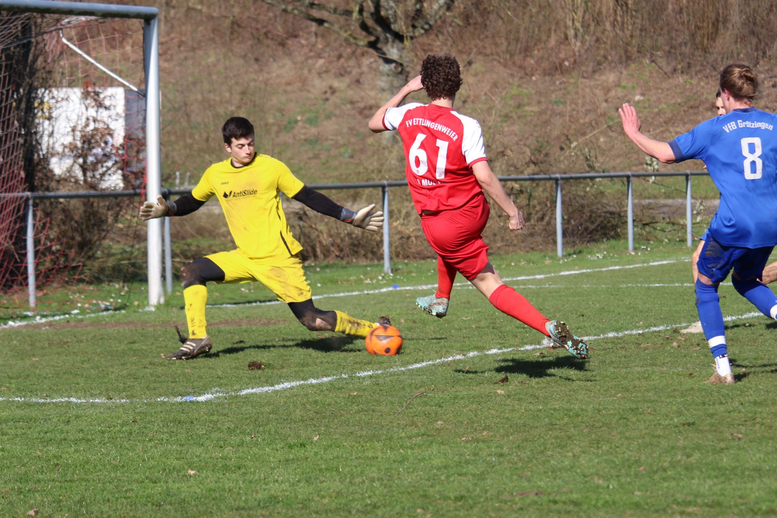 Bereits in der ersten Halbzeit bot sich dem FVE die große Chance zur Führung: Paul Müller tauchte frei vor dem Rüppurrer Torhüter auf, doch dieser konnte mit einer starken Fußabwehr den Rückstand verhindern. Im direkten Gegenzug zeigte sich auch die Ettlingenweierer Defensive hellwach und verhinderte mit gutem Stellungsspiel einen möglichen Gegentreffer.