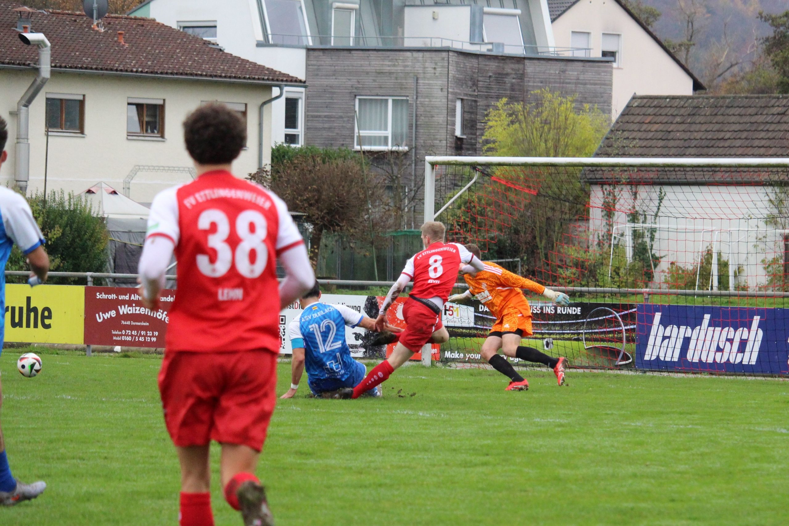 In einem richtungsweisenden Spiel ging es für die 1. Mannschaft des FVE gegen den Tabellennachbarn ASV Durlach. Nach der derben Niederlage gegen der SV Büchig nahm sich die Anstett-Seyfert-Truppe schon im Vorfeld viel vor und setzte es sofort nach dem Anpfiff um. In den ersten 20 Spielminuten erspielte sich der FVE mehrere 100%-ige Einschussmöglichkeiten. Erst in der 30. Spielminute gelang es Nico Lehn den Führungstreffer zu erzielen. Trotz spielerischer Überlegenheit erzielte der Gegner in der 38. Spielminute den Ausgleichstreffer zum 1:1. Nachdem man den Gegner danach besser ins kommen ließ, gelang nach einem sehenswerten Spielzug Nico Lehn mit seinem zweiten Treffer in der 45. Spielminute die 2:1 Führung. Mit dieser so wichtigen Führung ging es in die Halbzeitpause.