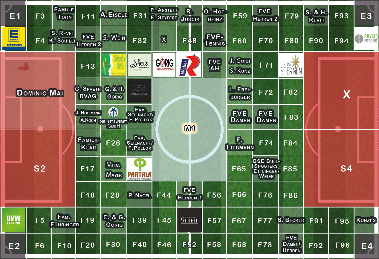 Um die Finanzierung unseres neuen Kunstrasens zu unterstützen, haben wir eine Sponsorentafel ins Leben gerufen. Auf dieser Tafel finden sich alle, die eine Platzpatenschaft übernommen haben.